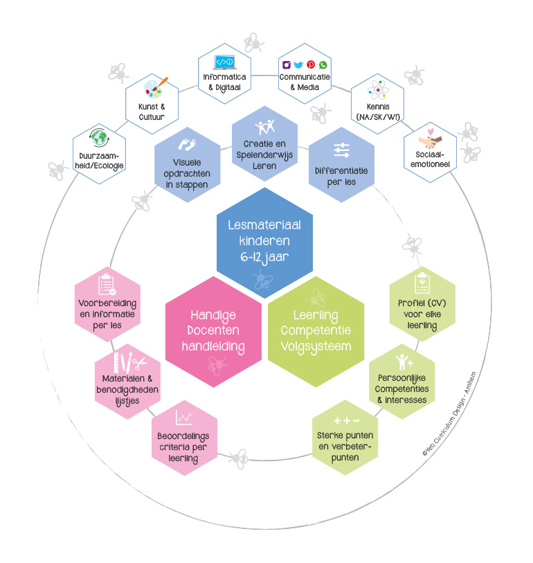 Het lesmateriaal combineert spelen en leren op unieke wijze. Er is ruimte voor kunst, cultuur, duurzaamheid maar ook voor experimenteren en creëren. Ook digitale informatievaardigheden zijn onderdeel van het lesmateriaal. Doen, durven, proefjes nemen, maar ook fouten maken en ervan leren is de basis voor de lessen. Kinderen worden uitgedaagd om hun kritische denkvaardigheden te ontwikkelen. De lessen kunnen zowel als print of digitaal / online via digibord (of op afstand) gebruikt worden.